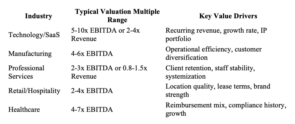 These multiples serve as starting points rather than definitive formulas. Your specific business characteristics, competitive positioning, and growth trajectory will significantly impact where you fall within these ranges. Understanding these nuances helps set realistic expectations and identify areas where strategic improvements can meaningfully increase valuation.